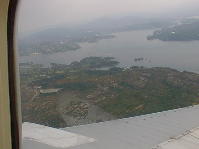 Vanuit het vliegtuig, tijdens de landing op Bergen Flesland